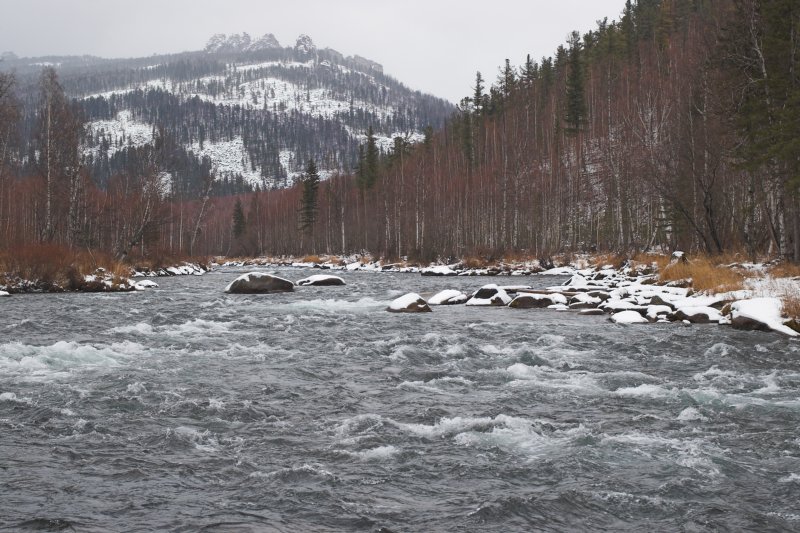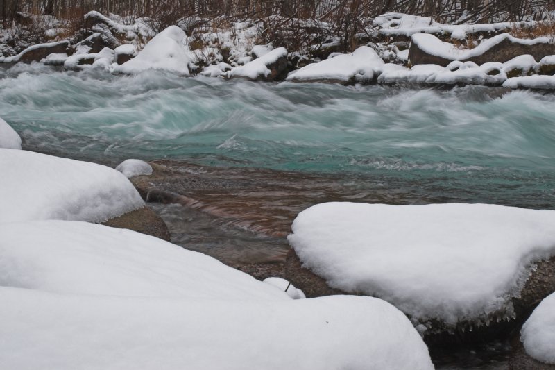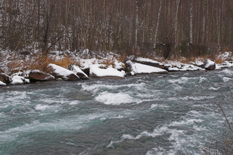 Спрашивая про пороги зимой, я, конечно, не надеялась на большую воду. Но ее цвет!! Ради этого стоило идти.